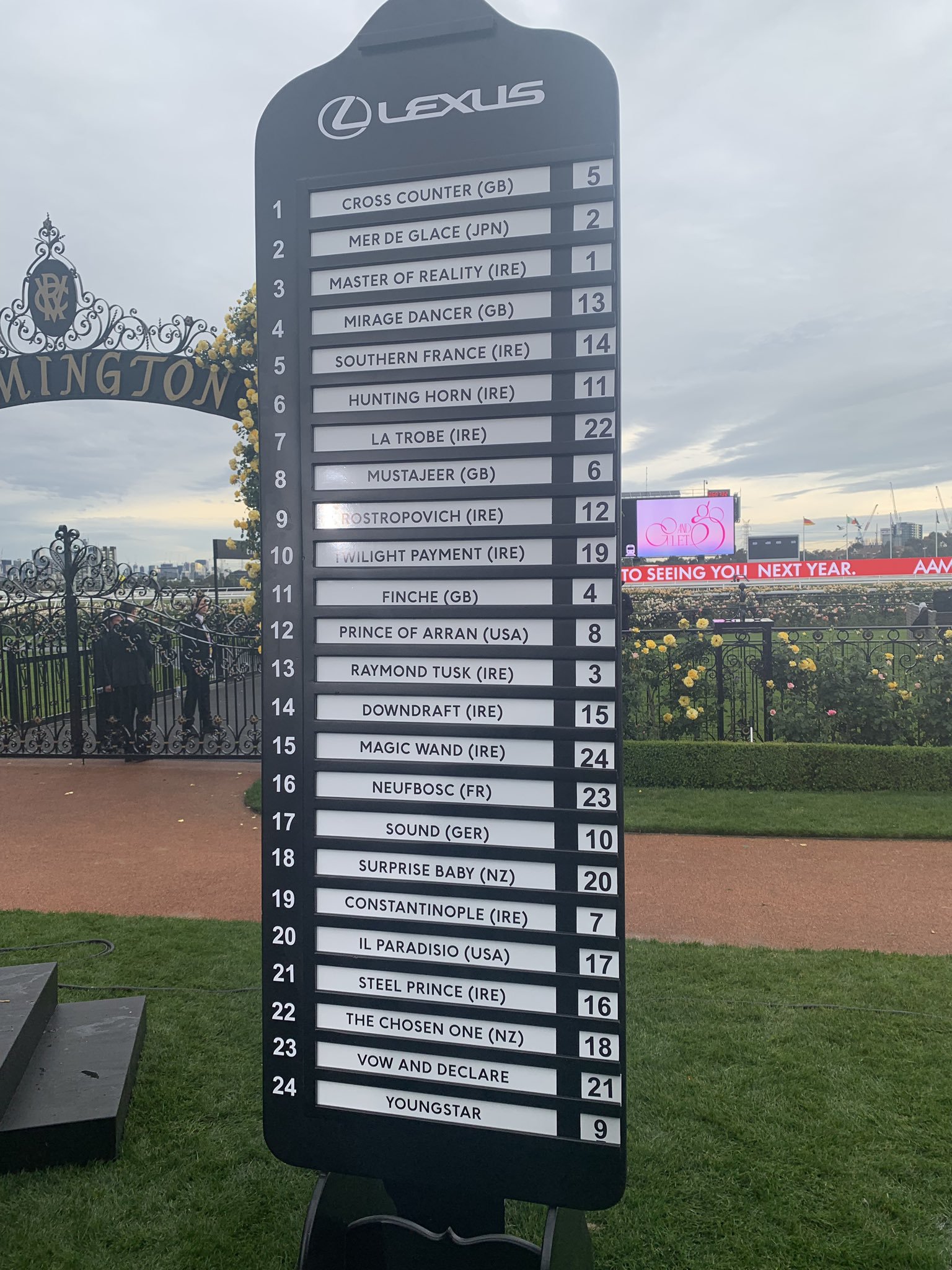 11월 5일(화) 24두가 출전한 가운데 멜버른 외곽에 위치한 플레밍턴(Flemington) 경마장에서 열린 멜버른 컵(Melbourne Cup, G1, 3200m) 2019년 대회는호주의 경주마 Vow And Declare가 우승했다.