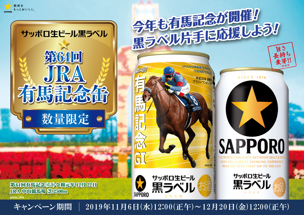 일본맥주 삿포로 쿠로라벨(サッポロ 黒ラベル) 치바공장이 매년 연말 그랑프리 경마대회 아리마기념(Arima Kinen, 有馬記念, G1, 2500m)을 기념하여 나카야마 경마장과 콜라보로 출시하는 기간 한정판 캔맥주가 올해도 출시되었다.