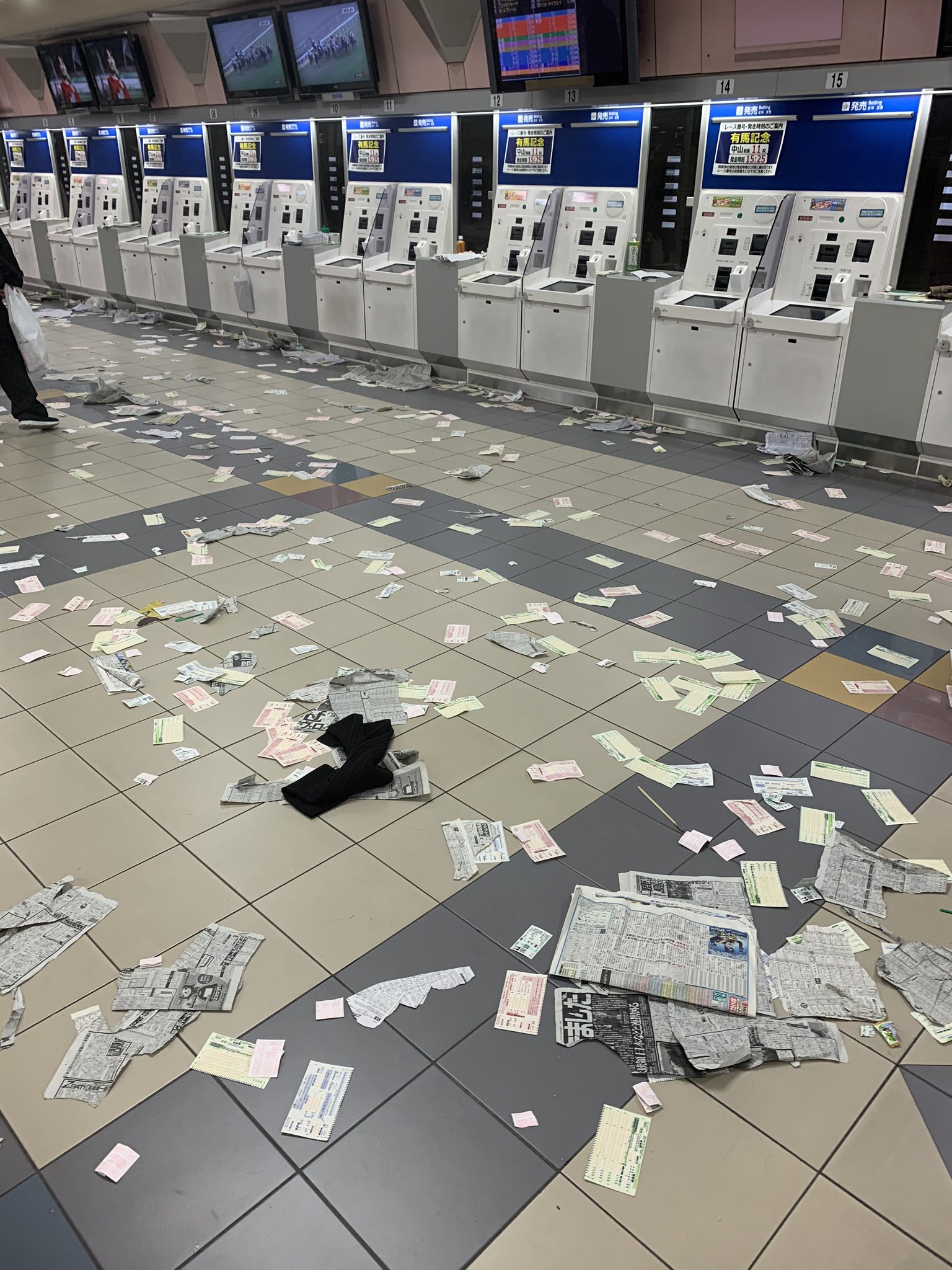 나카야마 경마장 경주 종료 후 남은 쓰레기