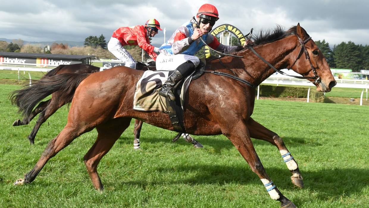 Jockey Aaron Kuru and his horse, Des De Jeu, recovered from an almost disasterous jump during a steeplechase event at Awapuni Racing Centre in North Palmerstown, New Zealand, allowing them to storm to victory on June 16.