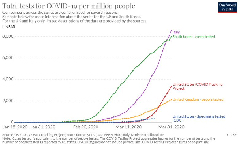일본의 인구 100만명당 검사 수는 117명(3월19일 시점)으로 독일의 2023명(3월15일)보다 크게 뒤졌다.