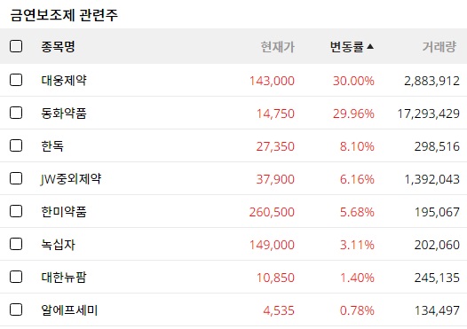 금연보조제 관련주 급등