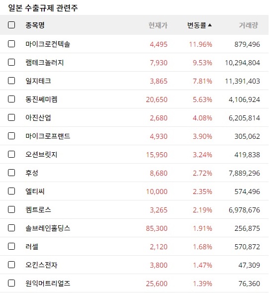 일본 수출규제 관련주 급등