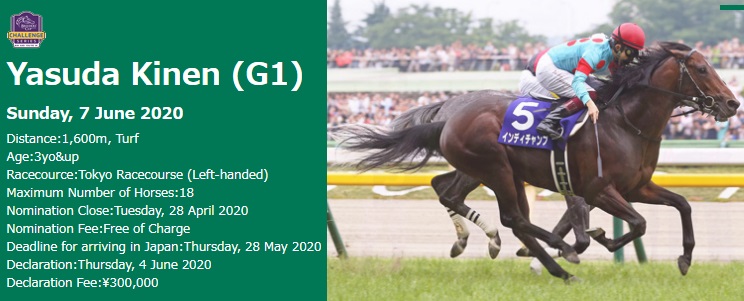 6월 7일 일본중앙경마 도쿄경마장에서는 G1 대상경주 야스다기념(Yasuda Kinen, 安田記念) 경마대회가 코로나19 예방 무관중으로 시행된다.