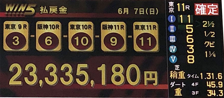 금주 일본경마 로또마권 WIN5 적중마권은 25장, 환급금은 약 2억 5천만원