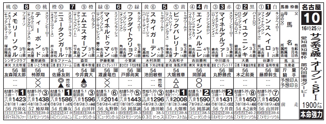 9일 일본지방경마 나고야경마장 3세마 출전 아이치현지사배 도카이더비(Tokai Derby, 東海ダービー, SPI) 지방경마예상지와 종합지 공유